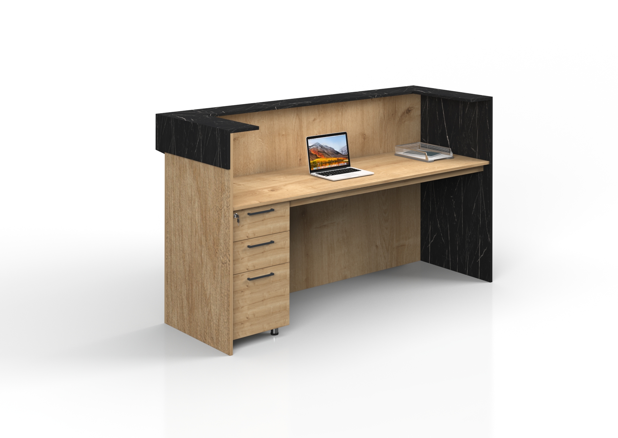 ARTE RECEPTION DESK offers a comfortable workspace with its durable material and ergonomic design. Its scratch-resistant and heat-resistant surface ensures longevity, while its easy installation provides practical use.