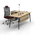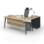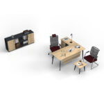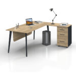 ATOM DESK WITH SHELVES offers a comfortable workspace with its durable material and ergonomic design. Its scratch- and heat-resistant surface ensures longevity, while its easy assembly provides practical use.
