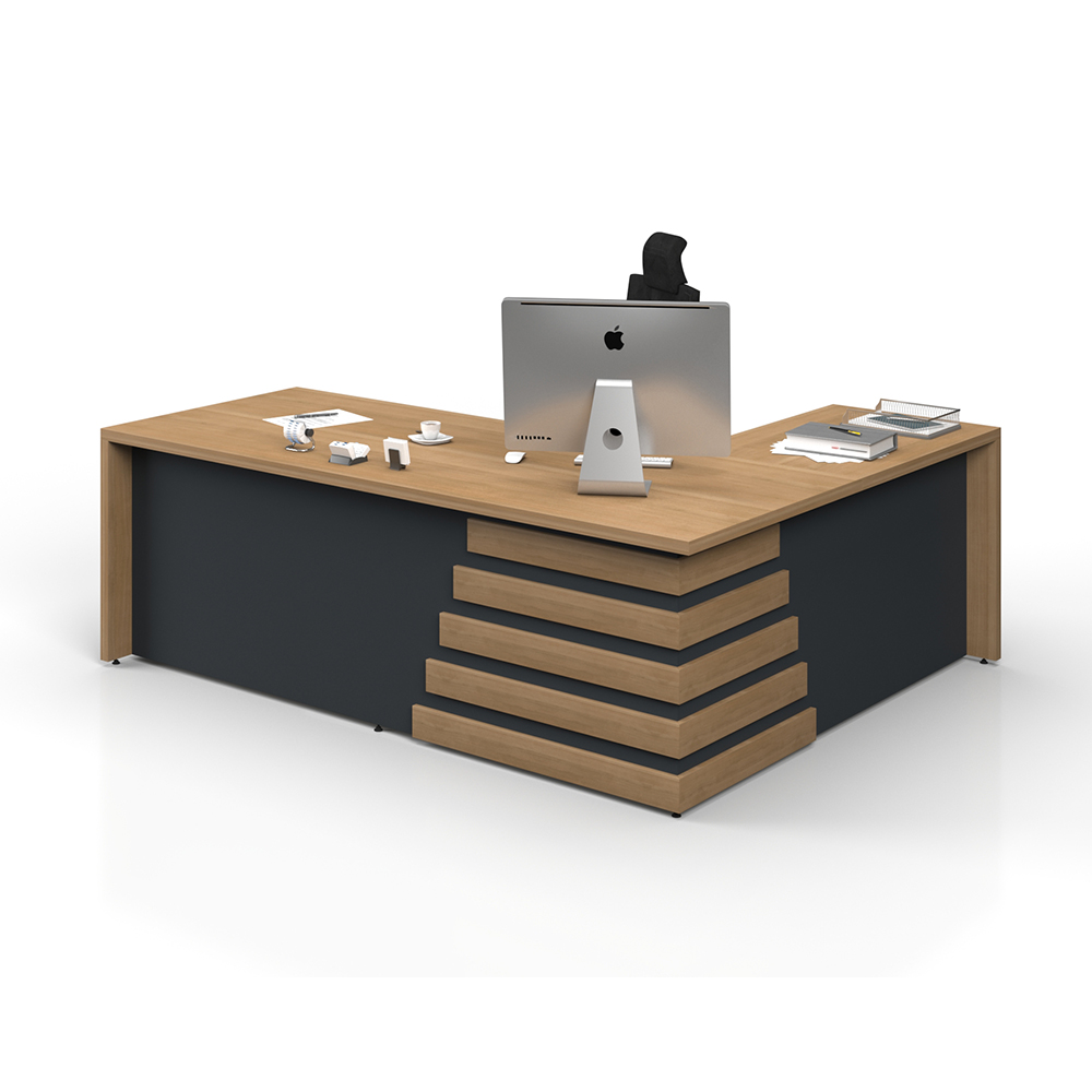 TERRA EXECUTIVE DESK offers a comfortable workspace with its durable materials and ergonomic design. Its scratch- and heat-resistant surface ensures longevity, while its easy assembly provides practical use.