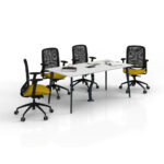 The ATOM MEETING TABLE offers a comfortable workspace with its durable material and ergonomic design. Its scratch- and heat-resistant surface ensures longevity, while its easy setup provides practical use.
