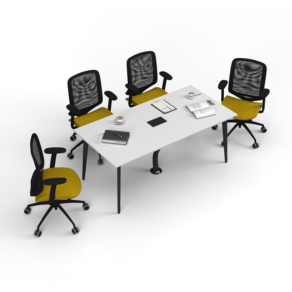 The ATOM MEETING TABLE offers a comfortable workspace with its durable material and ergonomic design. Its scratch- and heat-resistant surface ensures longevity, while its easy setup provides practical use.
